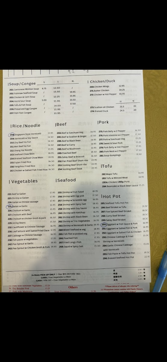 Hai Shang Restaurant 海上酒家 Menu